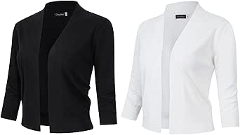 Tipo de cierre : Pull on Detalles de la tela: Exterior: 95 % poliéster, 5 % elastano Forro: 100 % poliéster; Lavar a máquina en agua fría con colores similares. Cárdigan bolero suave y cómodo que también sirve como funda para un vestido de noche en una noche de primavera/verano. Es corto, con mangas de 3/4, frente abierto y plisado, y sin cuello, lo que le da un toque moderno y femenino. Está hecho de 95% poliéster y 5% elastano, con un... Blusas y tops para mujer, blusa elegante de moda con cuello en V, camiseta de ma MUESTRA DEL MODELO: Ajuste regular., Llevar en talla XS. Bolero Elegante Oficina Cóctel Allegra K Top De Manga 3/4 Para Mujer, Cárdigan Corto Plisado Con Cárdigan Mujer Ideal para primavera/verano/otoño y para muchas ocasiones, como oficina, trabajo, negocios, reuniones, cócteles, salidas, hogar, bodas, uso diario, etc. Bolero de malla ligera y transparente para mujer. Cubierta fruncida de manga 3/4 recortada en moda. Elegantes boleros en primavera y verano para un aspecto casual. Comprueba tus medidas para asegurarte de que el bolero se ajusta antes de realizar el pedido